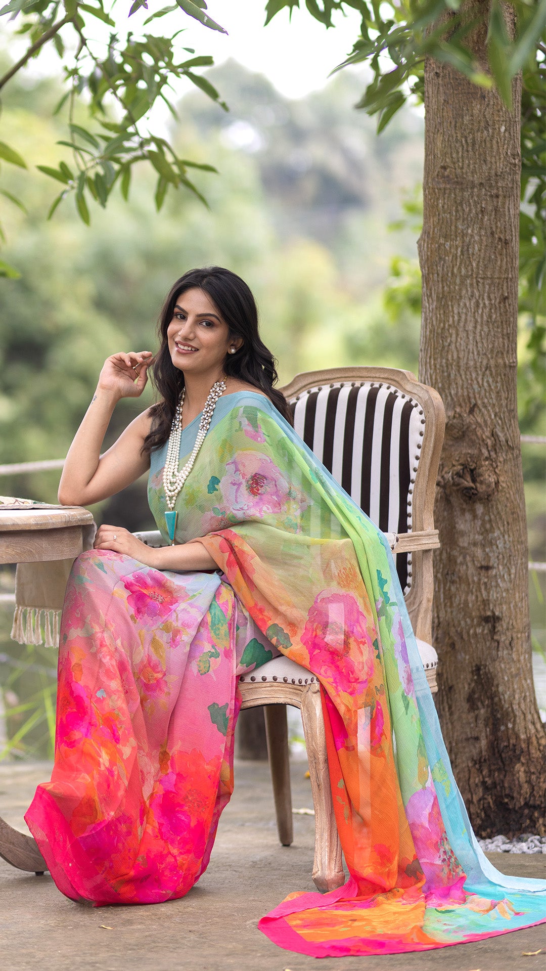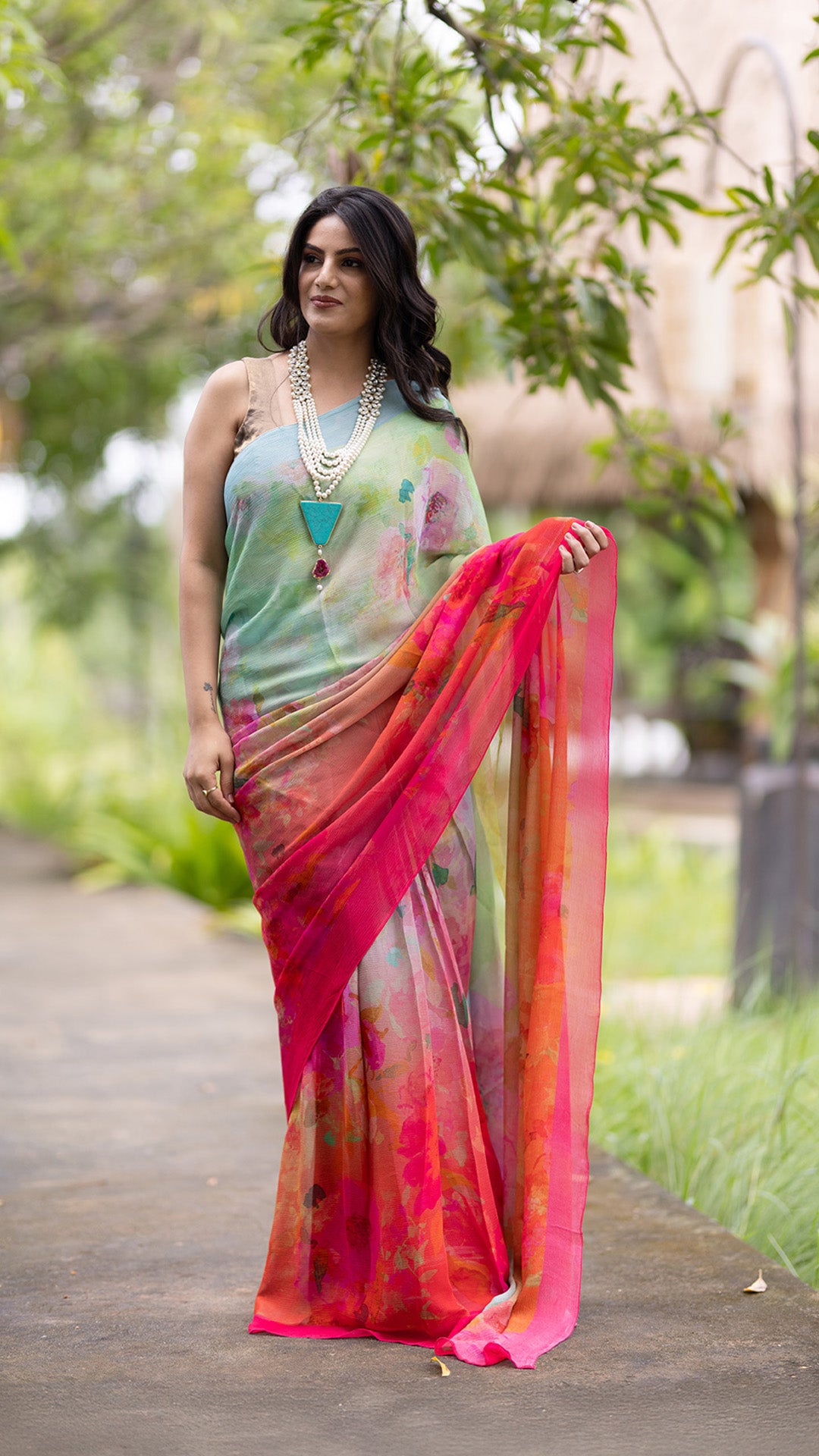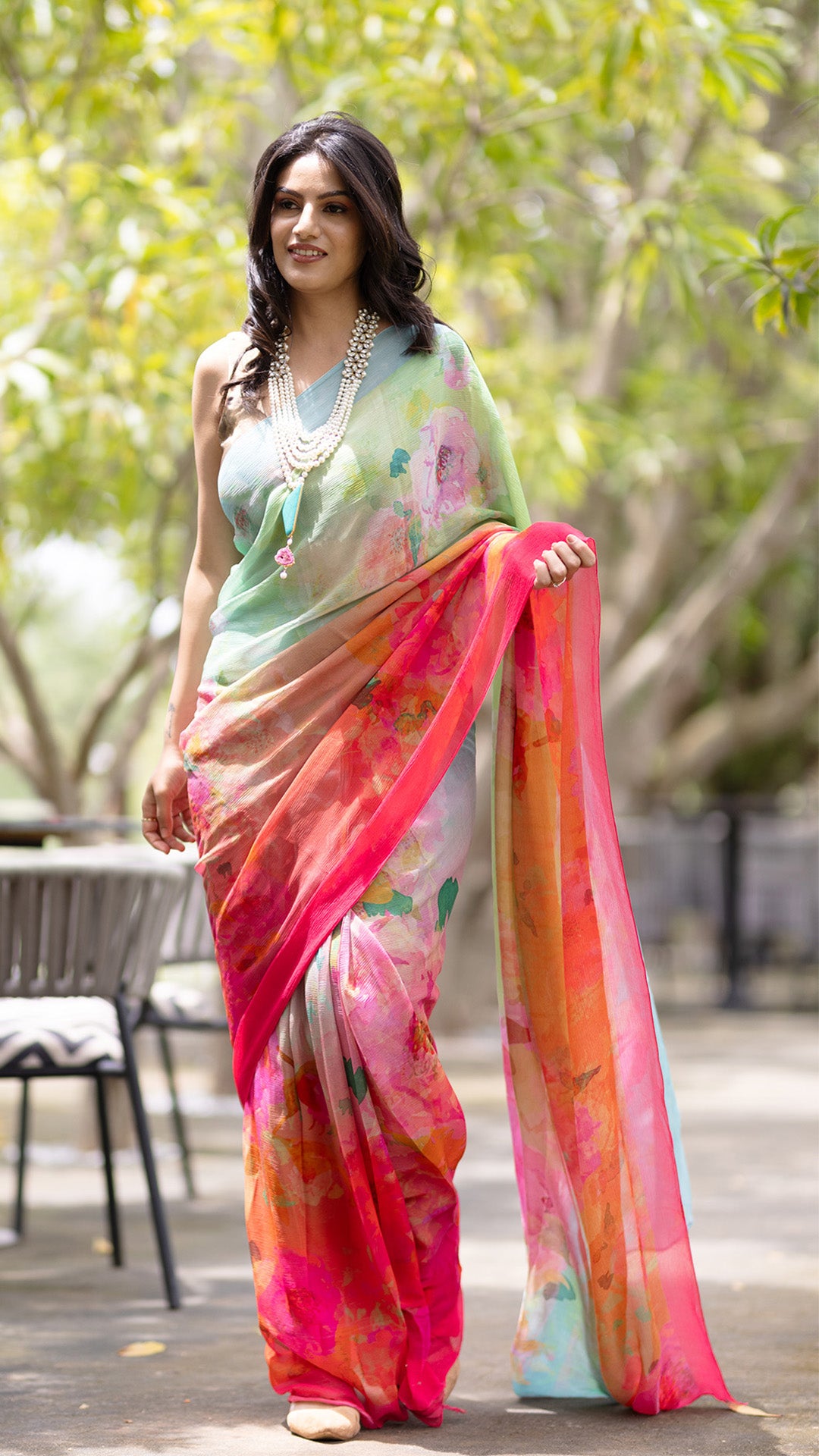 Effortless, luminous, alive Amalika’s pure silk chiffon turns every fold into a dance