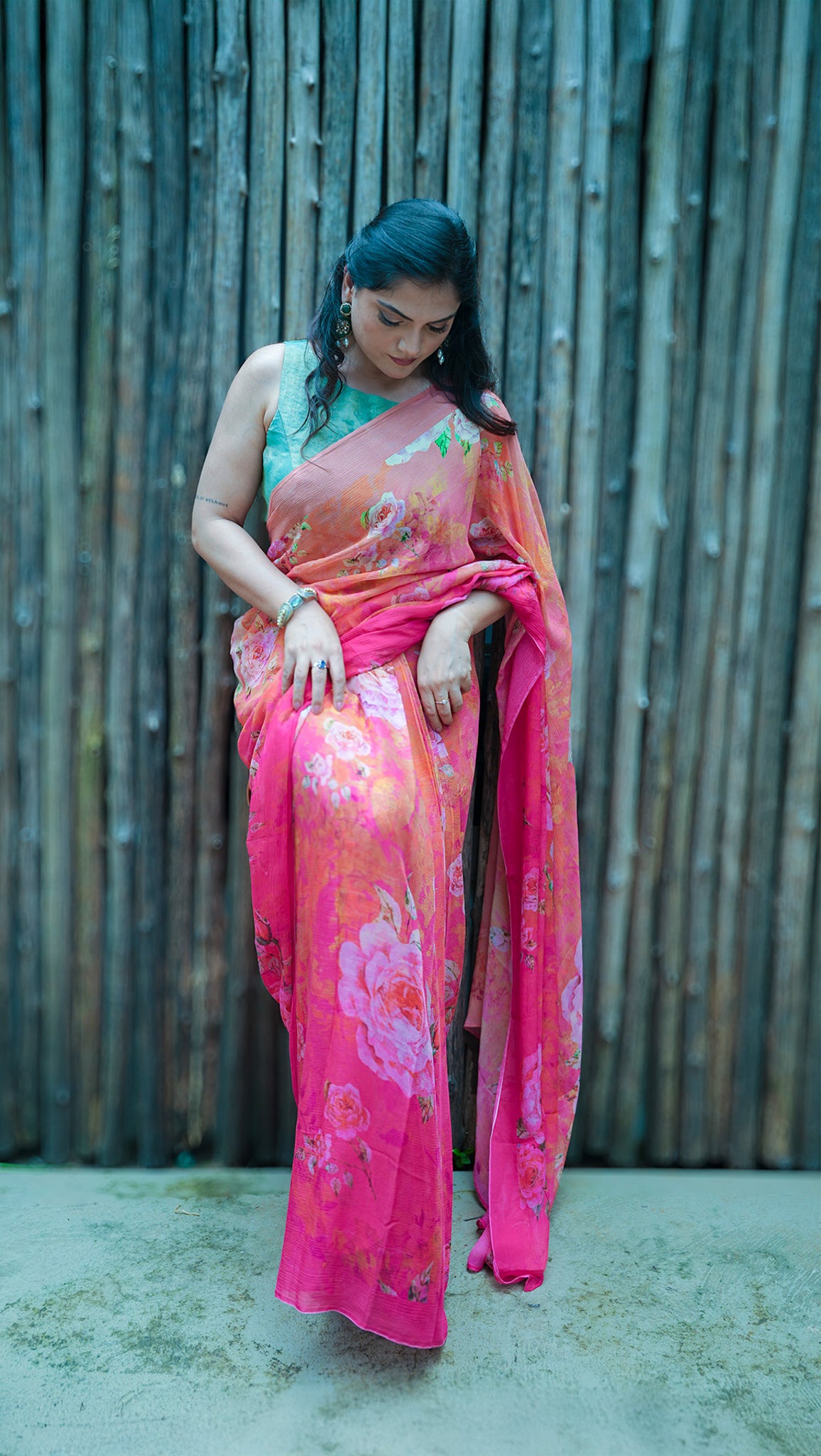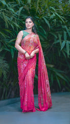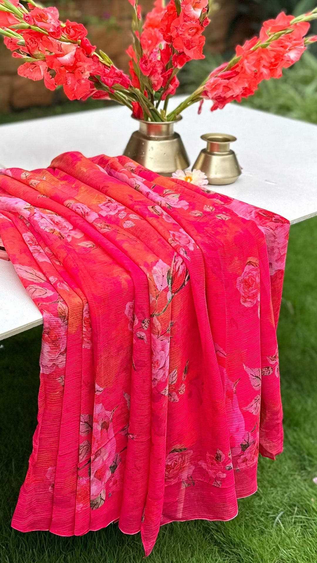 The Rose Ember – Red Ombre Silk Chiffon Saree