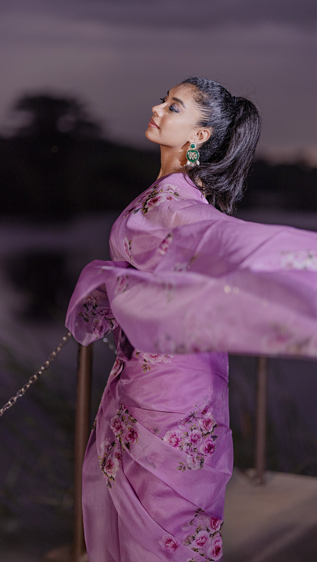 A pure silk creation, this saree is a canvas of confidence. It celebrates the Amalika woman — powerful yet playful, poised yet untamed. Draped in this, she doesn’t just wear fashion — she claims her territory.