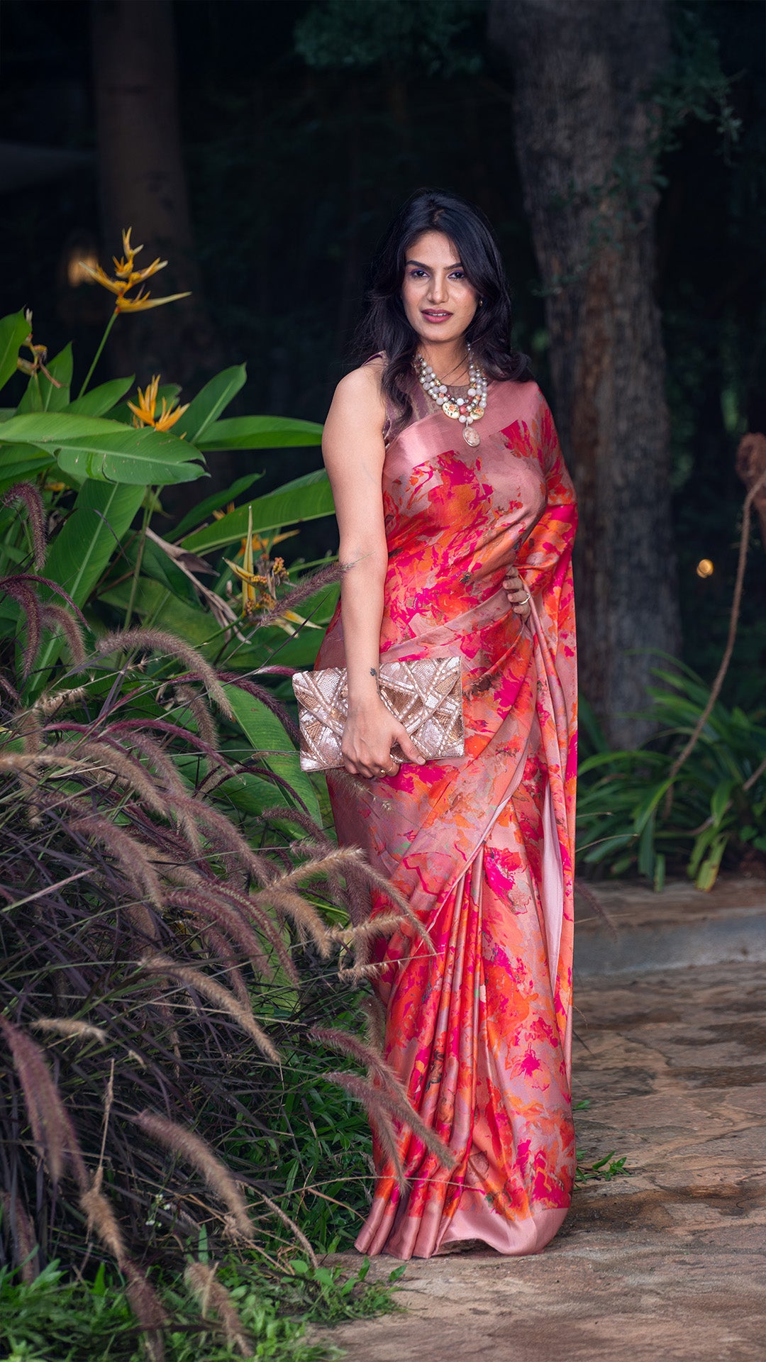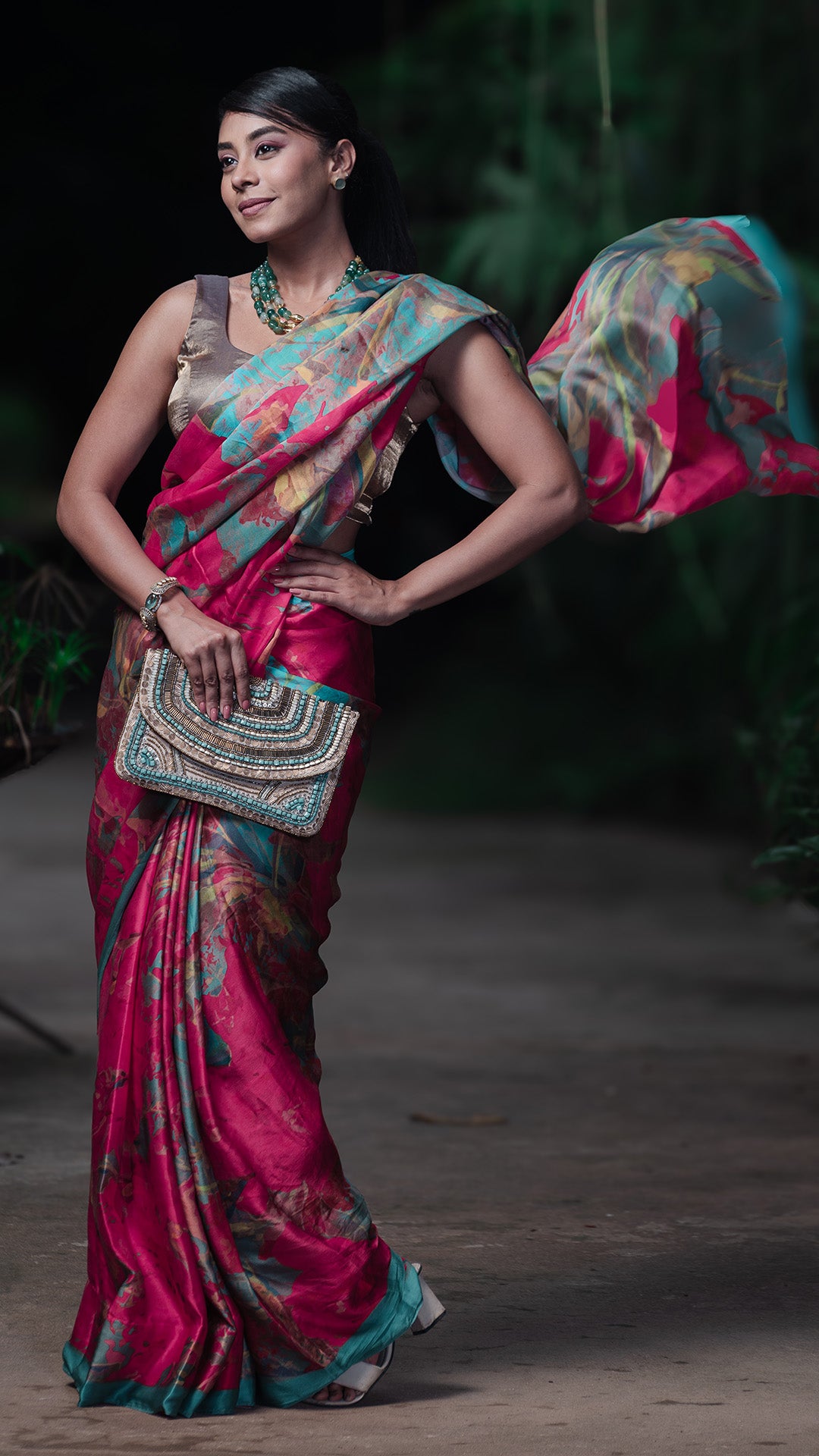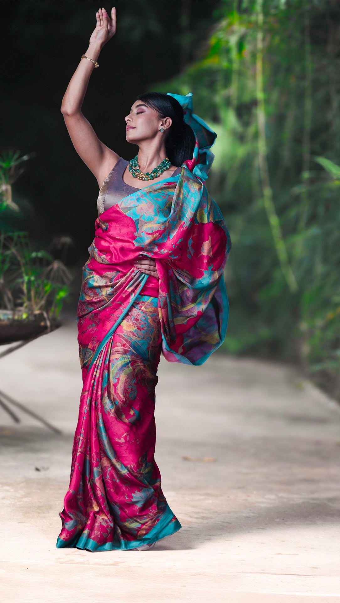 Amalika blooms with every woman. It adorns where delicate floral artistry meets timeless silk, and quiet elegance becomes a living celebration of grace.